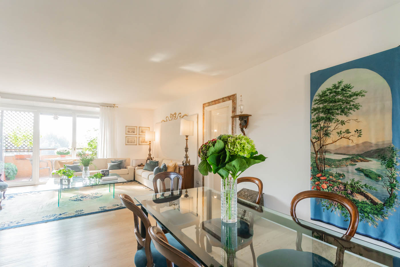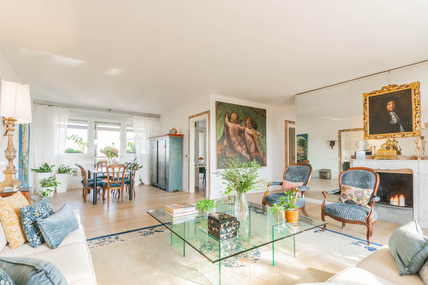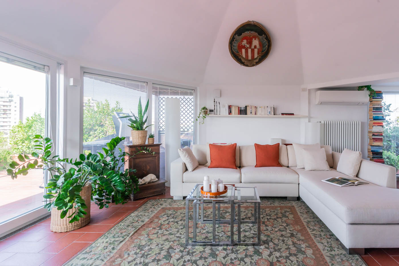 Al settimo e ottavo piano di un elegante palazzo con doppio ascensore, Tesio Penthouse interpreta la modernità milanese con raffinatezza classica e tecnologia d’avanguardia. Un doppio ingresso conduce a 357 m² di spazi luminosi: salone con camino e terrazza, cucina con balcone, studio e quattro camere, tra cui una suite padronale con bagno privato e vasca jacuzzi. Al piano superiore, un open space con living, cucina e sala da pranzo si apre su due terrazzi, uno dei quali con giardino pensile. Finiture di pregio, domotica integrata e pannelli fotovoltaici da 12 kW definiscono una residenza concepita per un vivere urbano sostenibile.